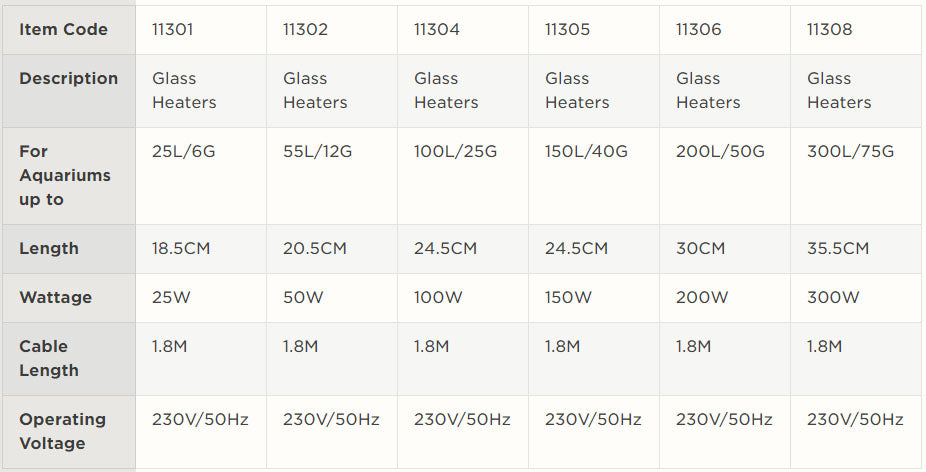 Aqua One Glass Heaters makes it easy to maintain the correct temperature, by providing accurate adjustable temperature and exceptional durability.