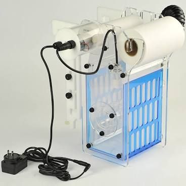 The ARF; removes the need for filter socks. Water is fed into the internal chamber via the aquarium systems drain, and then through the filter roll.