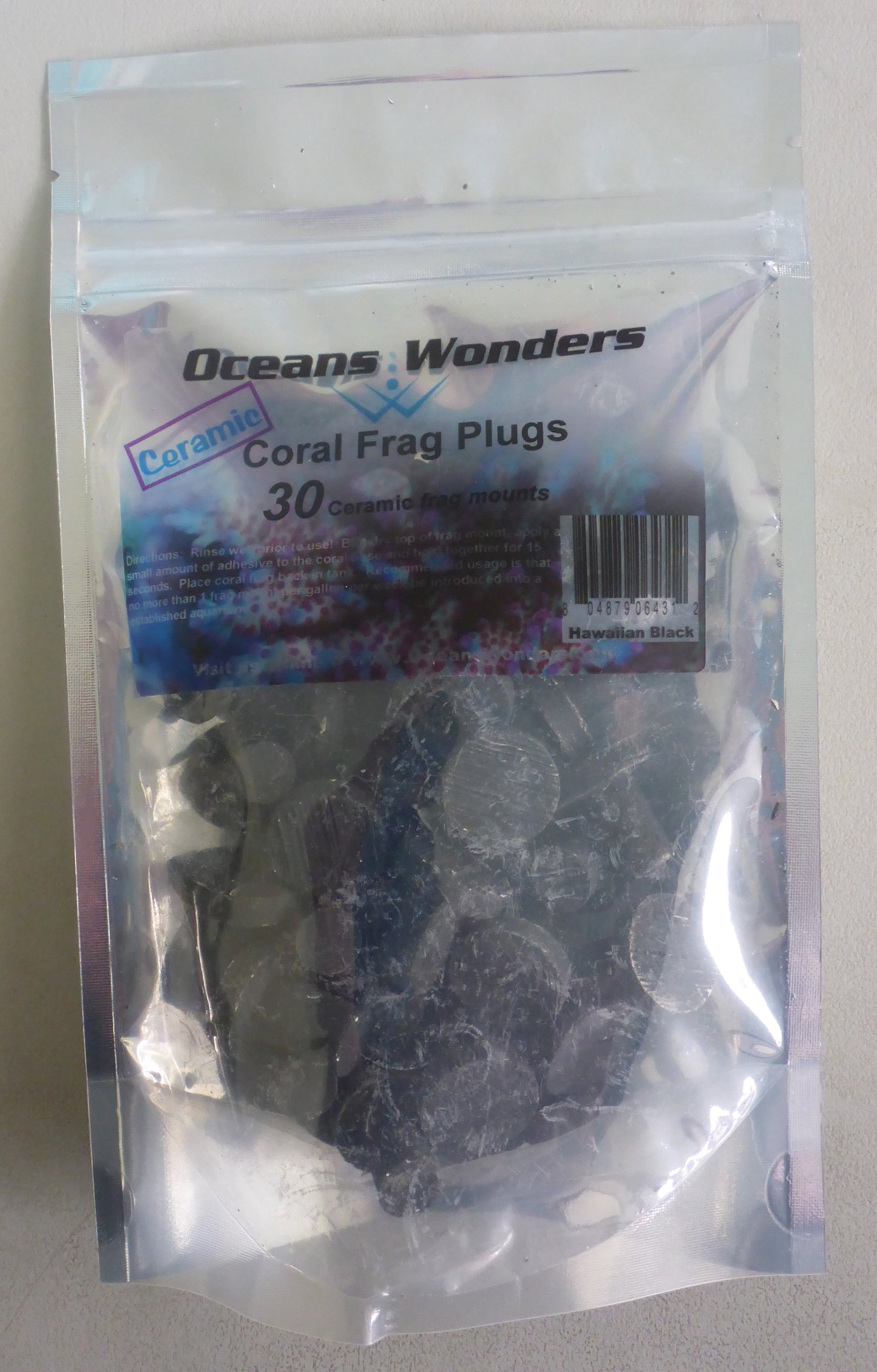 Oceans Wonders Coral Frag Plugs are perfect for the propagation or fragging of hard and soft branching corals such as Acropora, Birdsnest, Montipora, Kenya Trees, Xenia, ect. They are bright white in color, have a 7/8" crown with a 3/8" base and fit perfectly into standard eggcrate or into small cracks or crevices in live rock. They are made from a fused special grade bright white reef sand. This sand is a natural calcium based sand which has been shown to speed the spread of coralline algae growth and corals on the plugs. Each package has detailed usage instructions on it